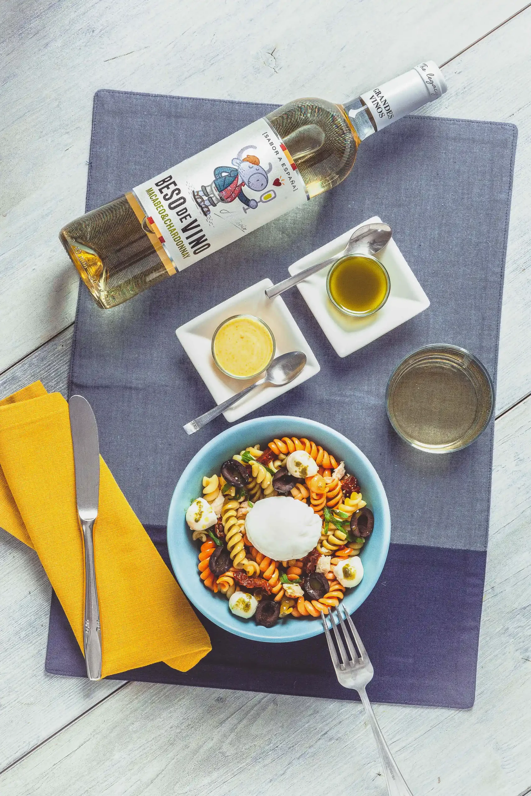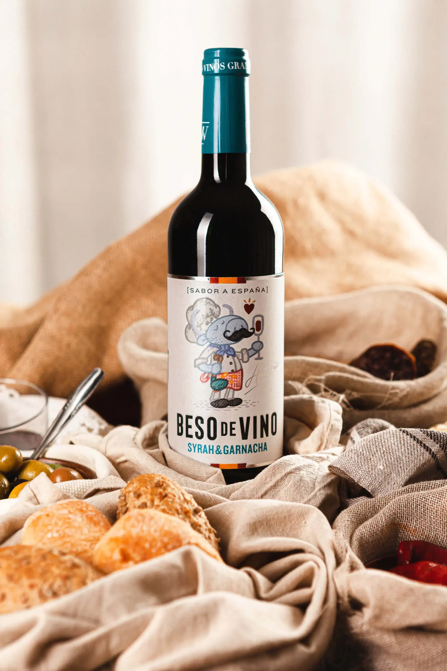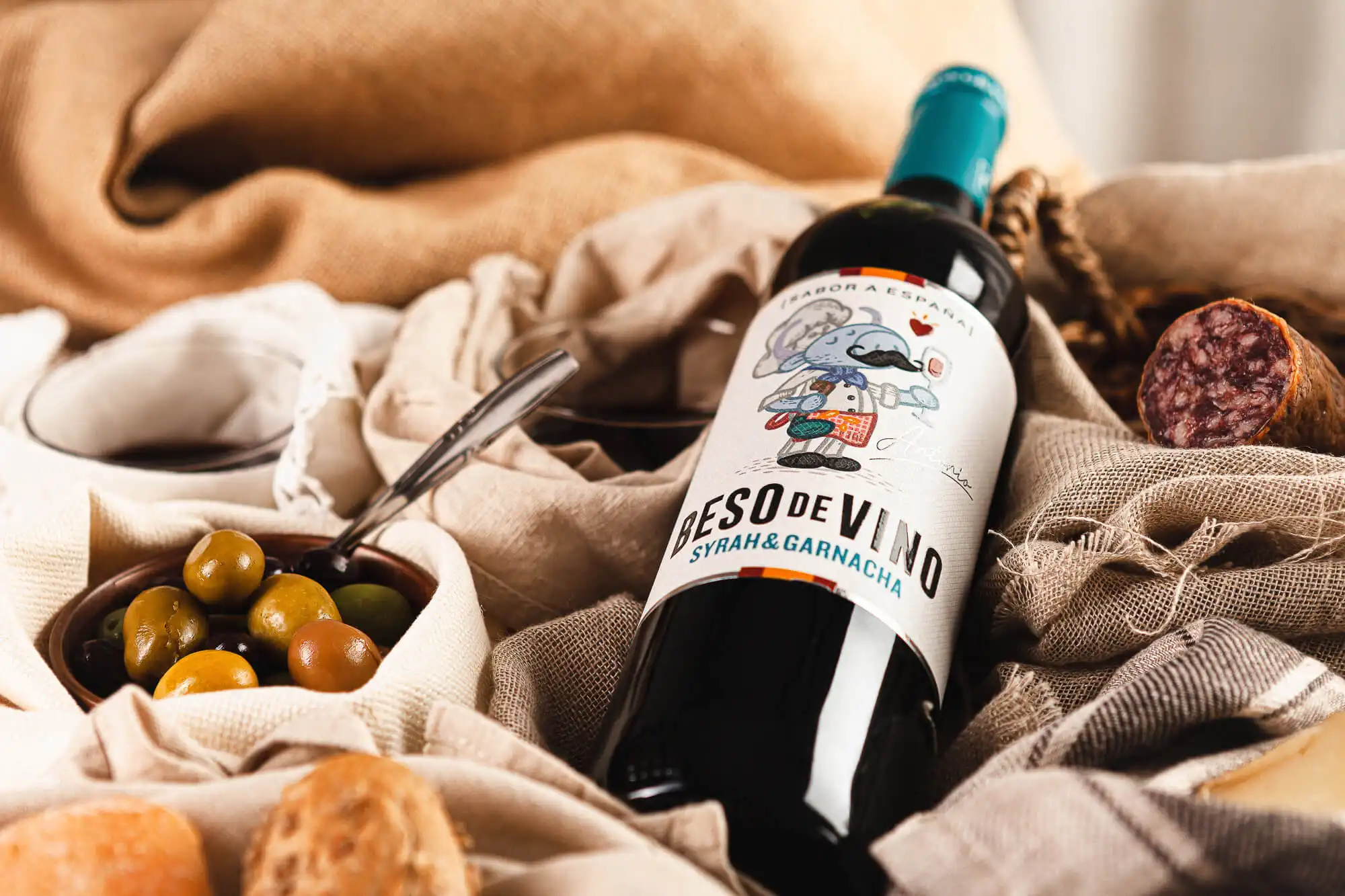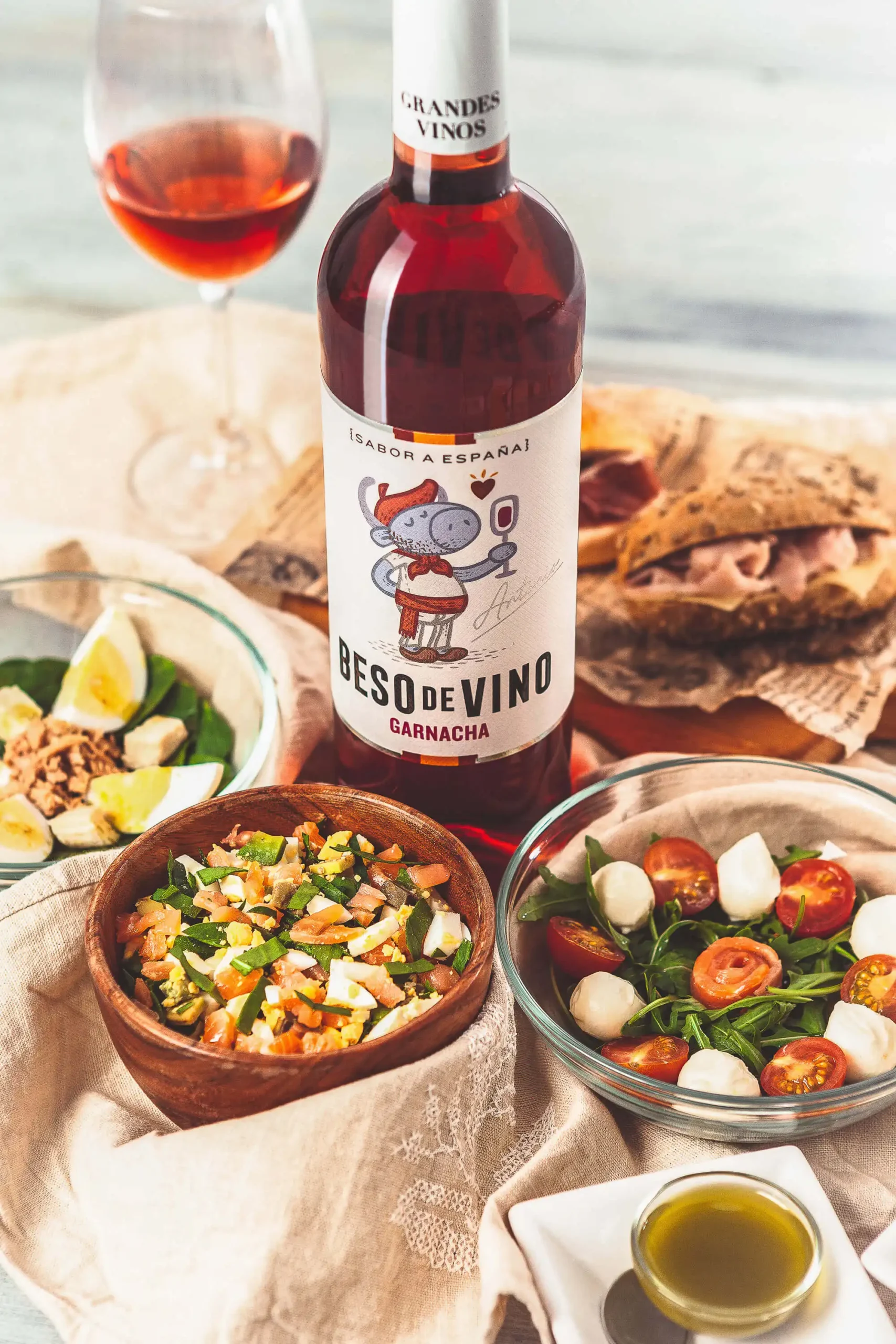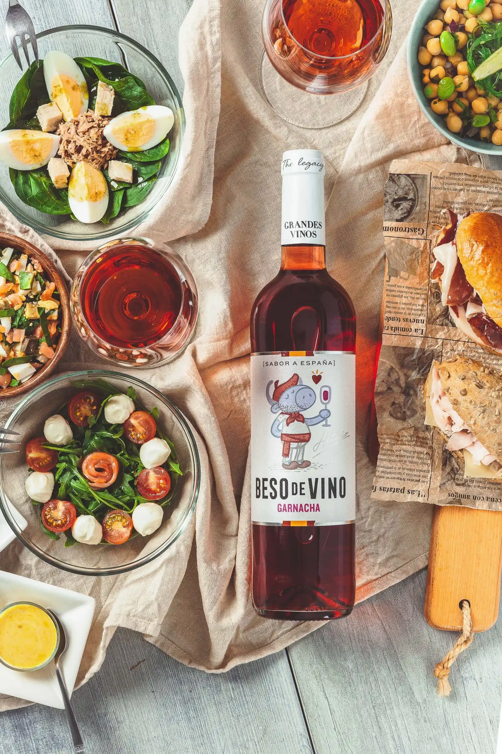 Beso de Vino es una marca de vinos jóvenes y frescos que se caracteriza por su suavidad en el paladar y su espíritu alegre. Para mostrar la versatilidad de sus vinos, hemos producido una serie de bodegones gastronómicos con un toque casual y desenfadado. Una serie de fotografías pensadas para redes sociales que muestran las botellas de Beso de Vino junto a una variedad de bocadillos y ensaladas frescas y coloridas. Los colores juegan un papel fundamental en la creación de una atmósfera alegre y divertida.necesidad