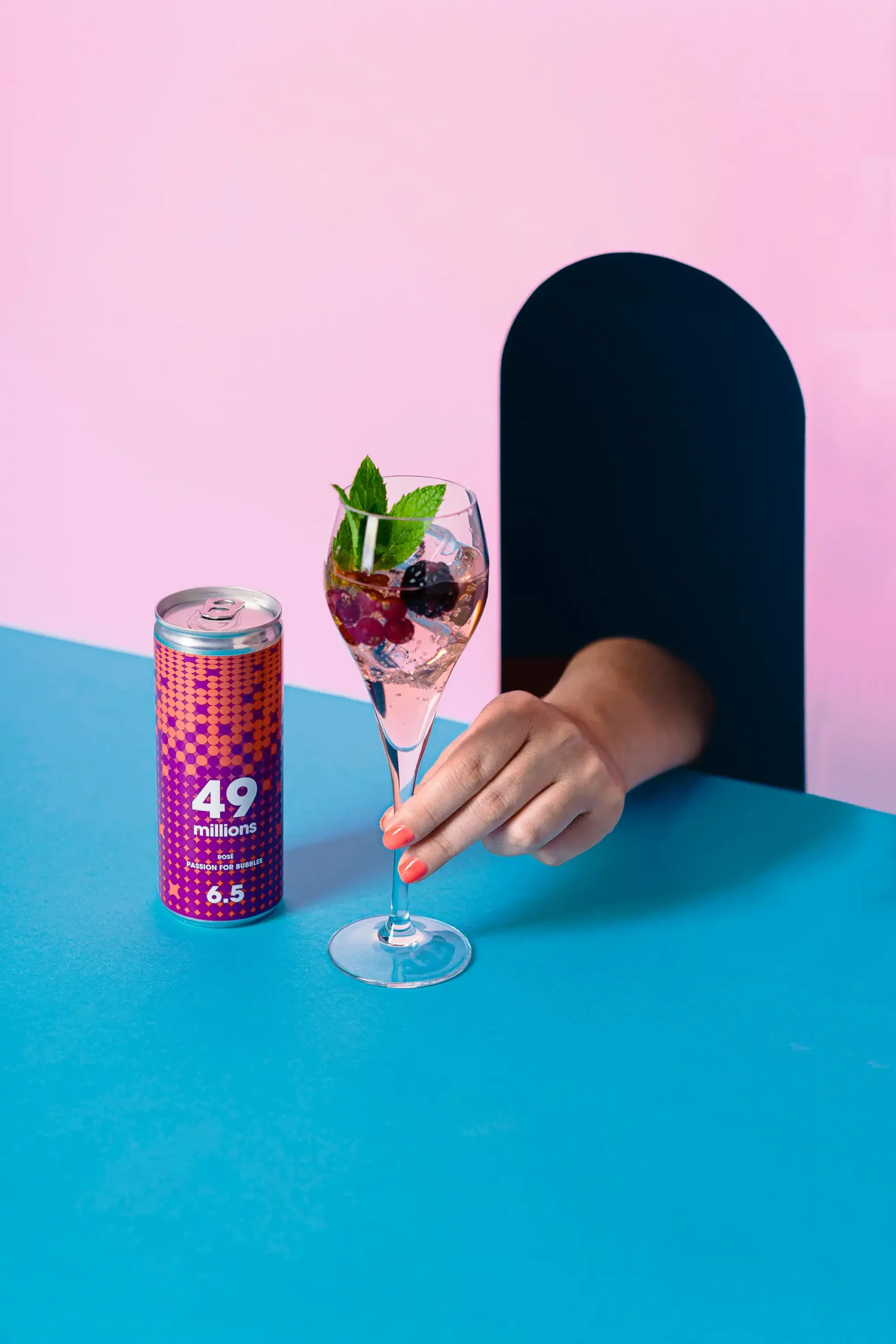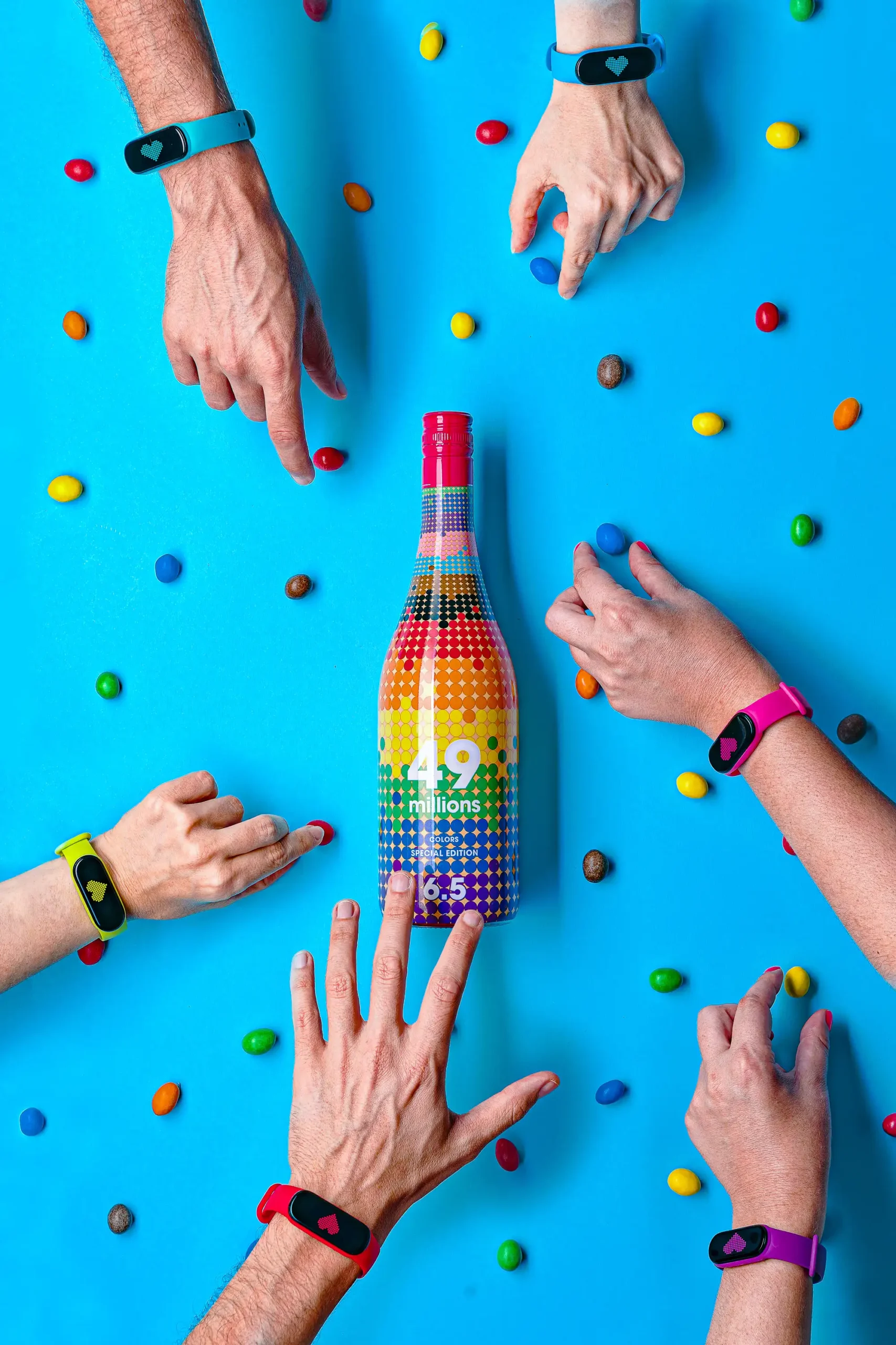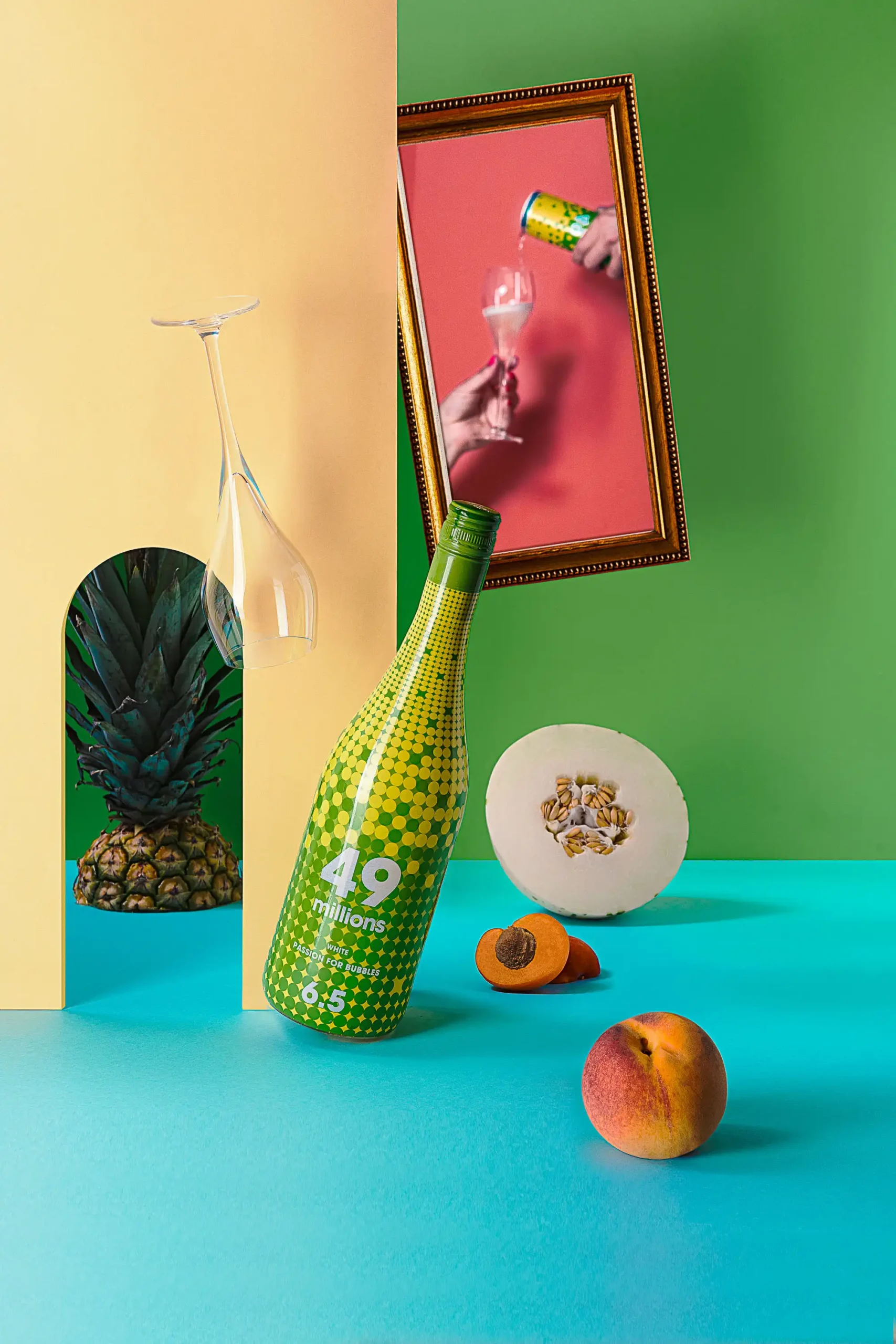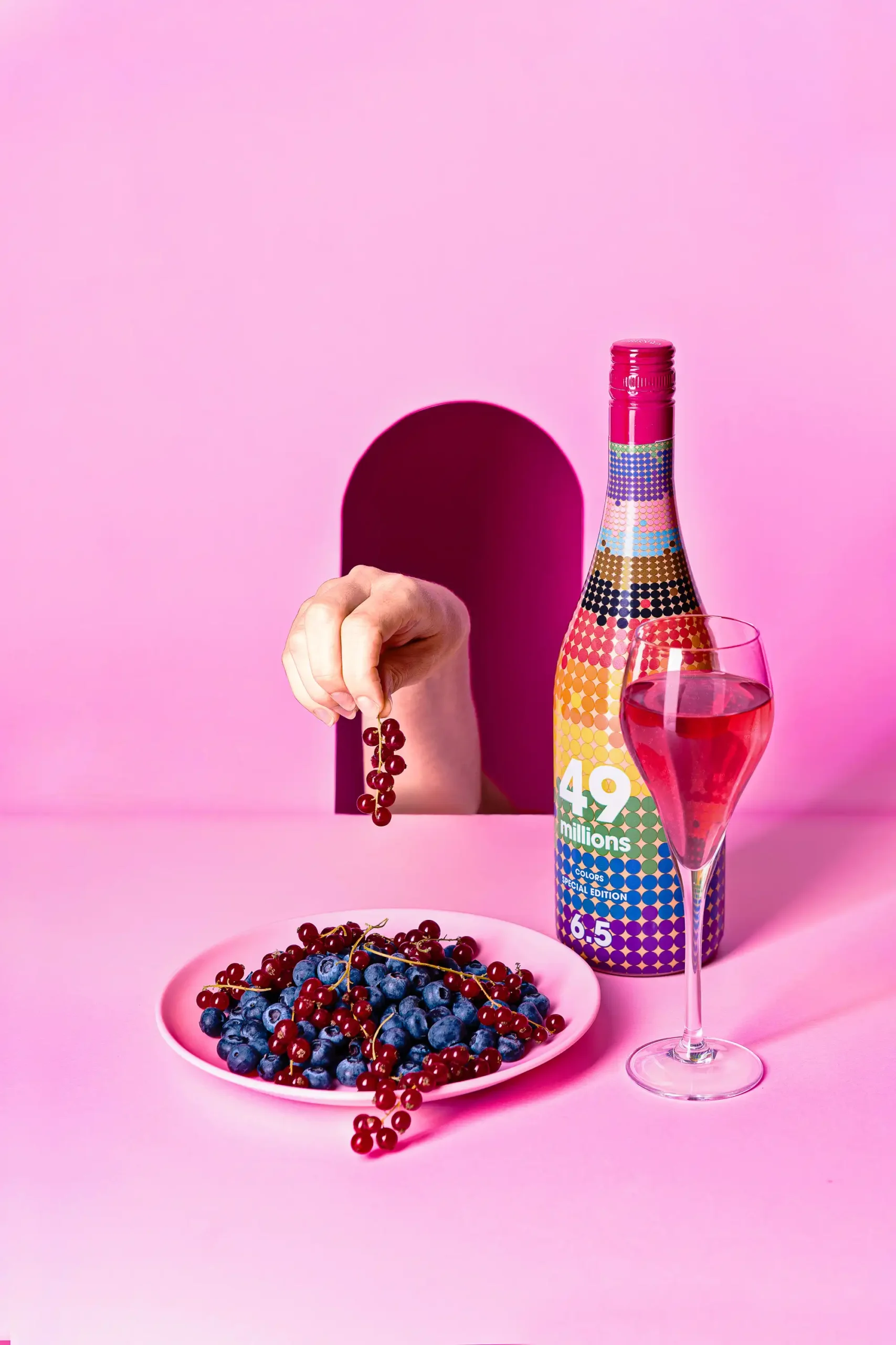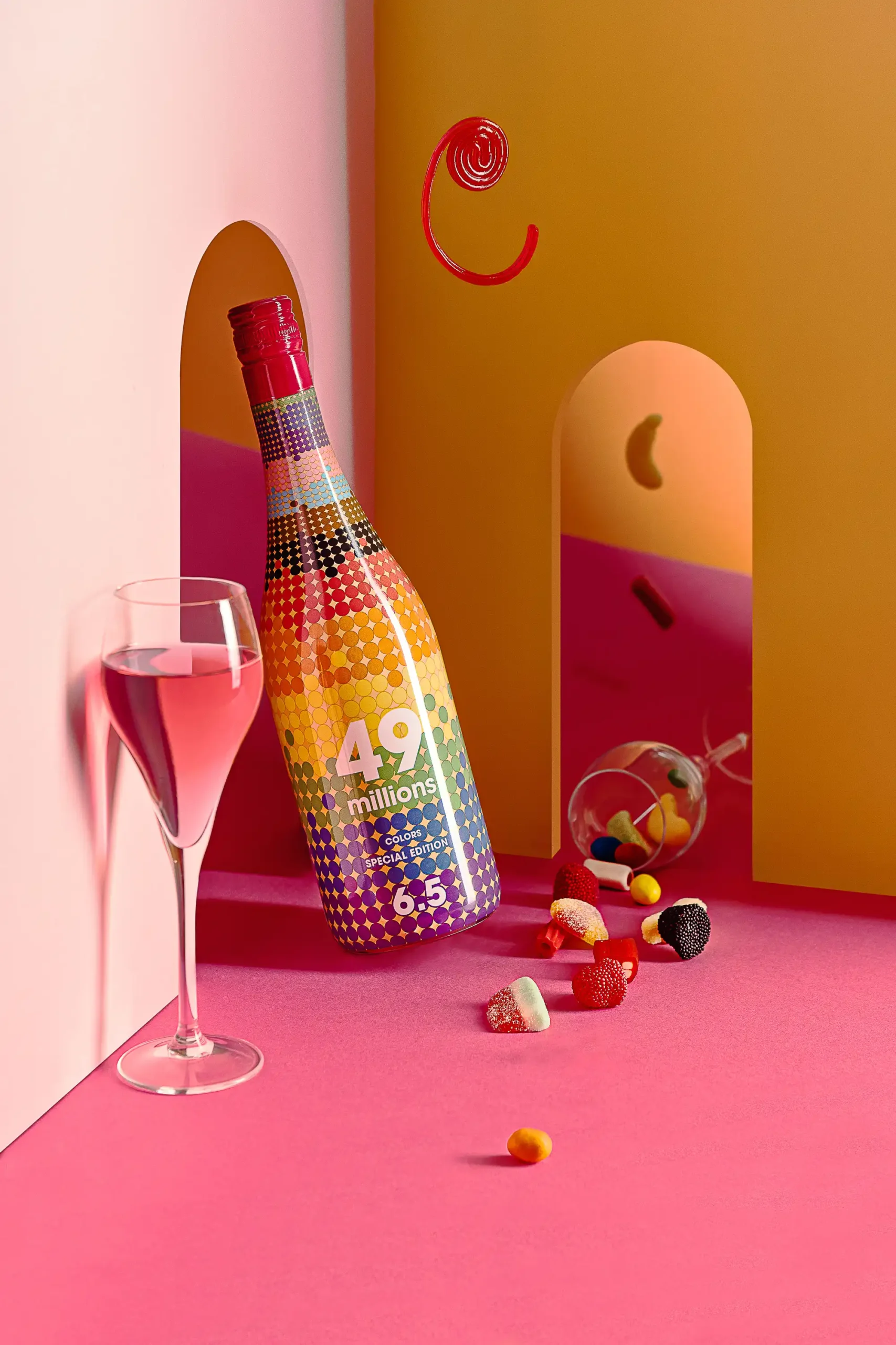 El resultado final es una serie de Fotografías para redes, web, catálogos, publicidad que no solo muestran la belleza y los colores de las botellas y el sabor del vino espumoso 49m, sino que también transmiten el espíritu joven, divertido y creativo de la marca.